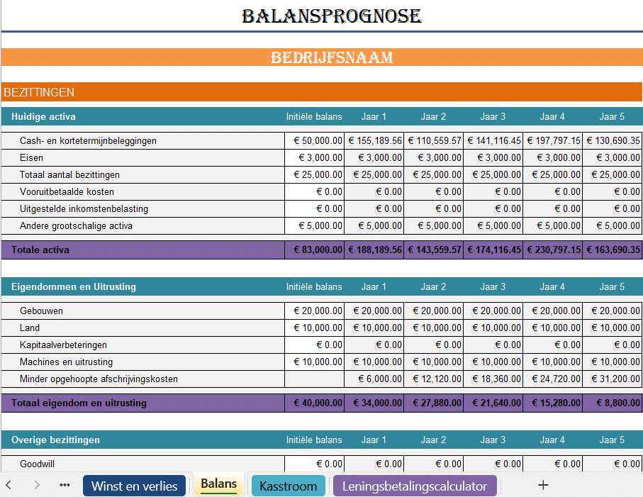 - ✔️ Prognose van financiële gegevens over 5 jaar