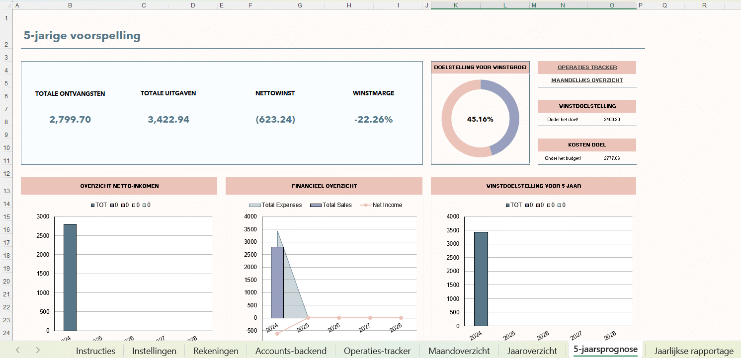 - ✔ Tijdbesparing: geen complexe software nodig – alles in Excel.